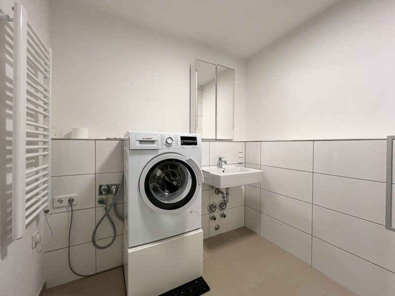 Zudem ist eine Waschmaschine von Bosch vorhanden.