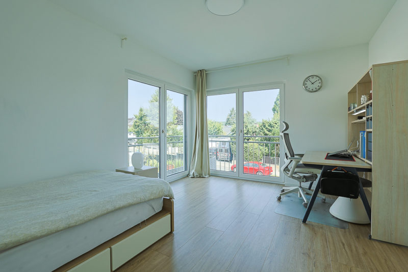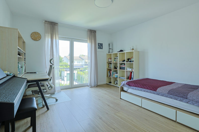 Das Obergeschoss überzeugt mit drei gut geschnittenen Schlafzimmern sowie einem großzügigen, modernen Tageslichtbad, ausgestattet mit eleganten Waschbecken, einer Walk-In Dusche und WCs der Marke Laufen. Das Dachgeschoss bietet ein geräumiges Schlafzimmer mit eigenem Tageslichtbad, das sowohl mit einer Badewanne als auch einer großen Walk-In Dusche ausgestattet ist. Hier oben haben Sie vom Bad, als auch vom Schlafzimmer aus einen direkten Zugang zur sonnigen Dachterrasse.