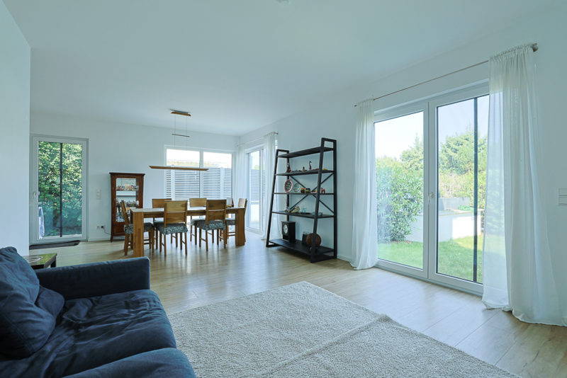 * großzügiger Wohn- und Essbereich mit direktem Gartenzugang