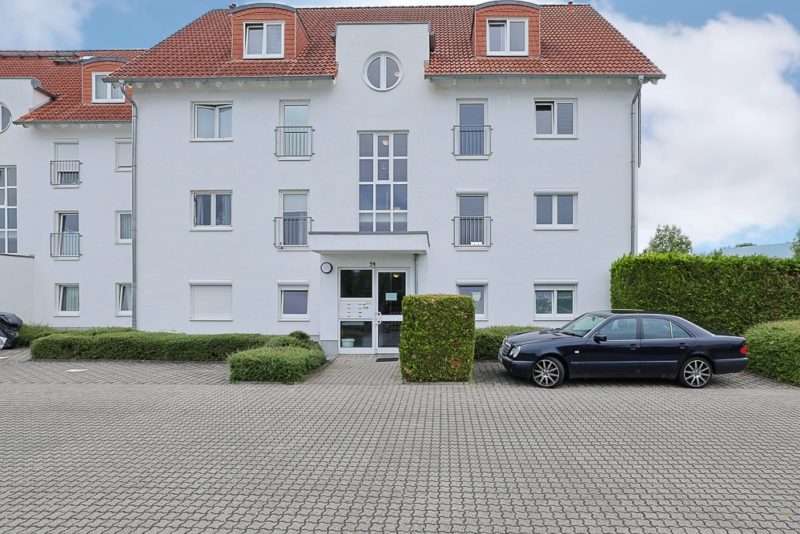 Die Wohnanlage umfasst drei baugleiche Häuser mit jeweils acht Parteien – insgesamt also 24 Wohneinheiten – und vermittelt durch ihre harmonische Struktur eine angenehme Nachbarschaftsatmosphäre.