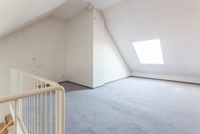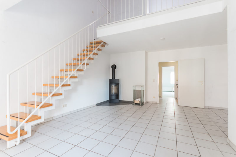 Über die offene Treppe erreicht man die Galerieebene, die vielseitig nutzbar ist – als Arbeitsbereich, Atelier oder Rückzugsort. Fliesen- und Teppichböden unterstreichen den wohnlichen Charakter der Räume.